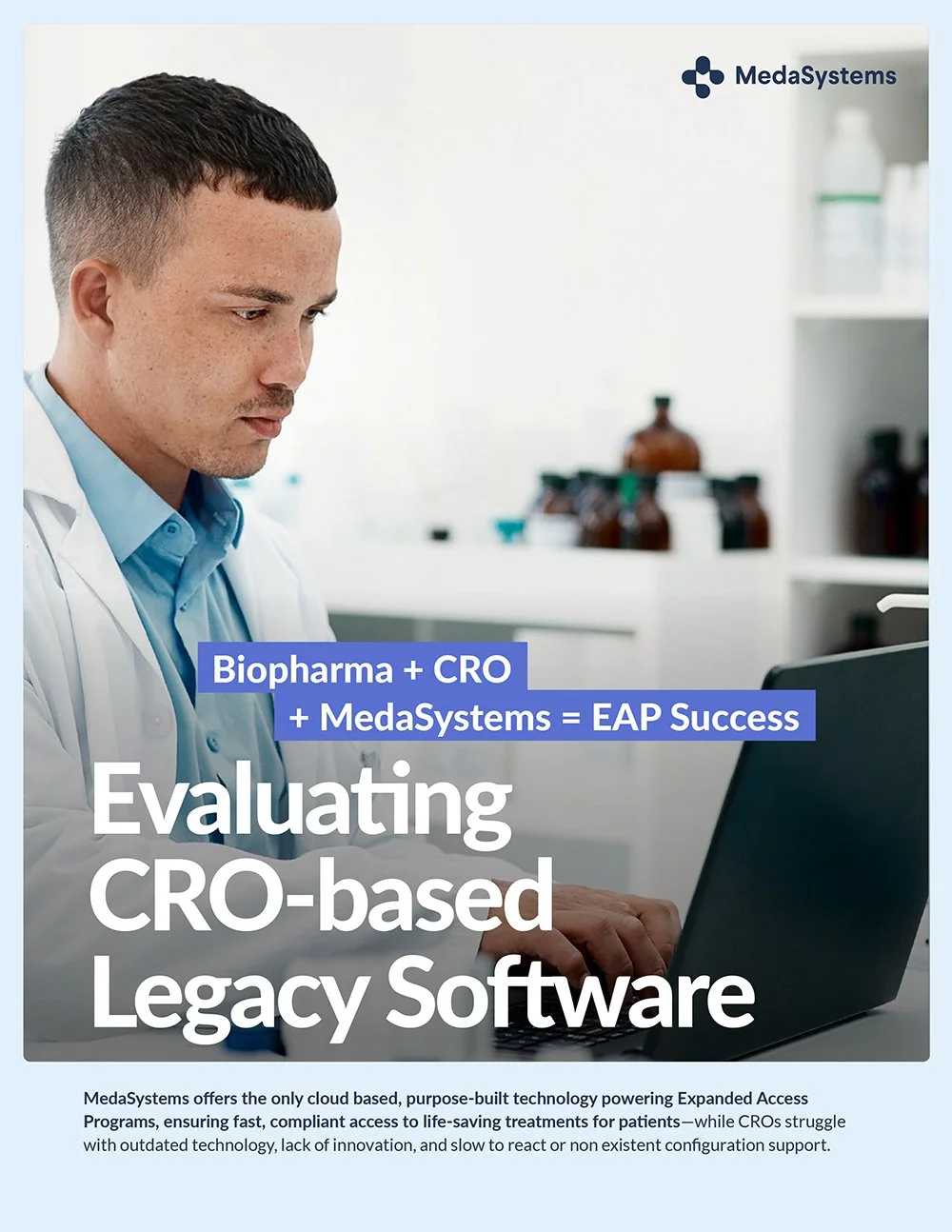 MedaSystems offers the only cloud-based, purpose-built technology powering Expanded Access Programs, ensuring fast, compliant access to life-saving treatments for patients—while CROs struggle with outdated technology, lack of innovation, and slow-to-react or non-existent configuration support.